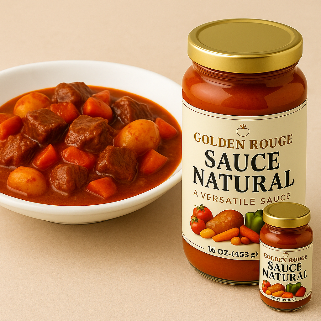 This is more than just a sauce; it's a labor of love. Whether you're preparing pasta, pizza, rice, stews, or any of your favorite dishes, Golden Rouge Sauce Natural is your trusted companion for naturally delicious cooking.